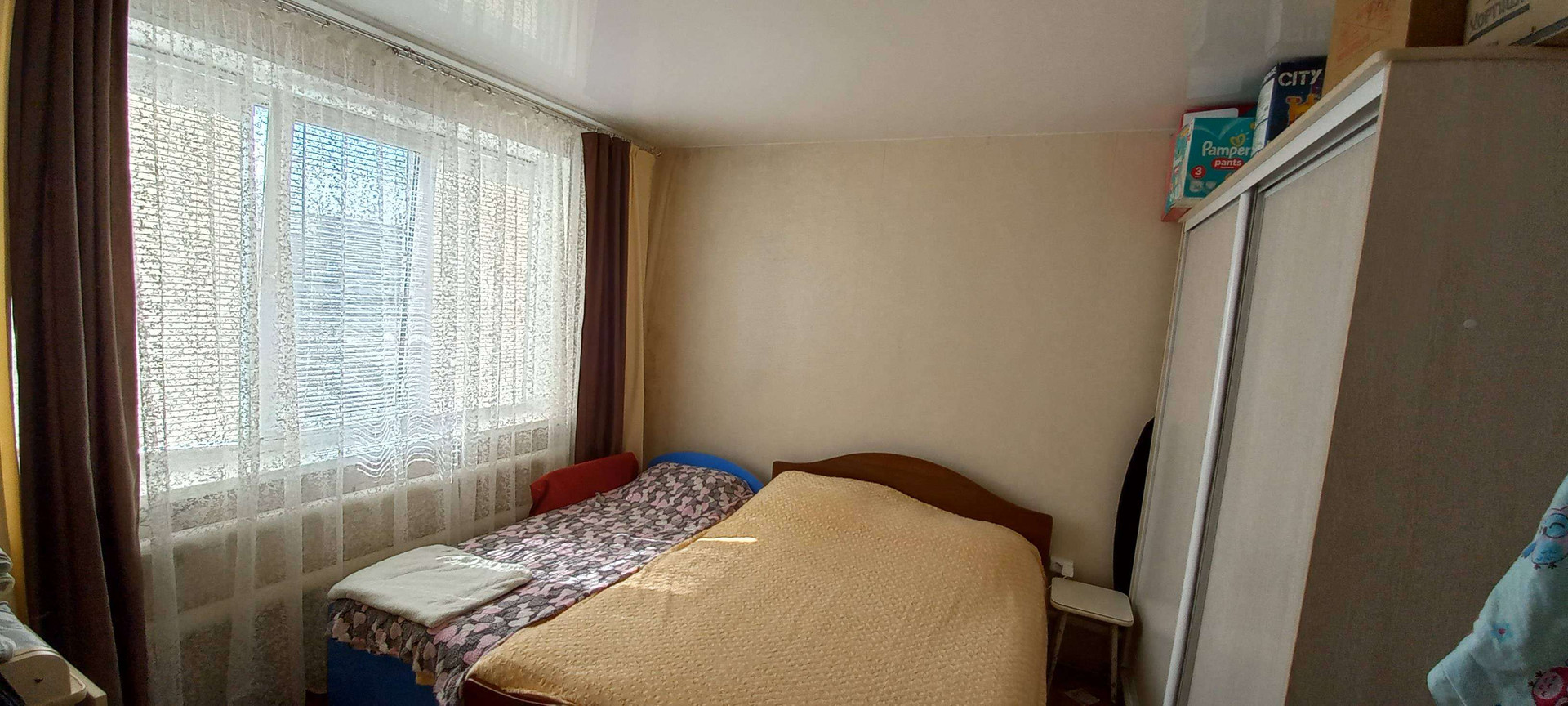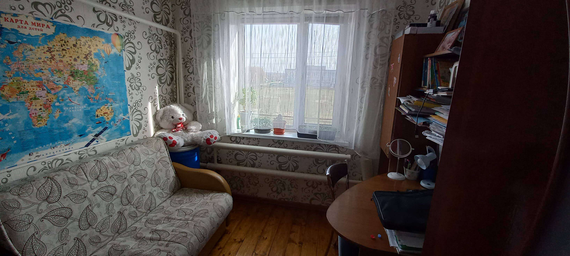 Рядом за окном школа, площадки для спорт игр. 2 спальни солнечная сторона, летом в зале и кухне свежо, не мучает жара хорошо обдувается