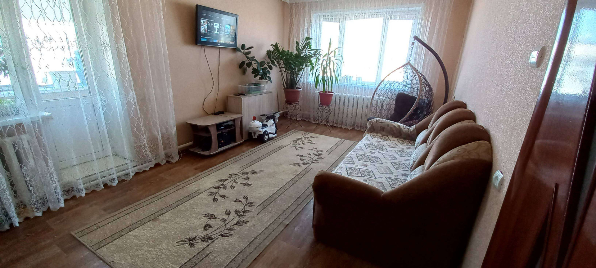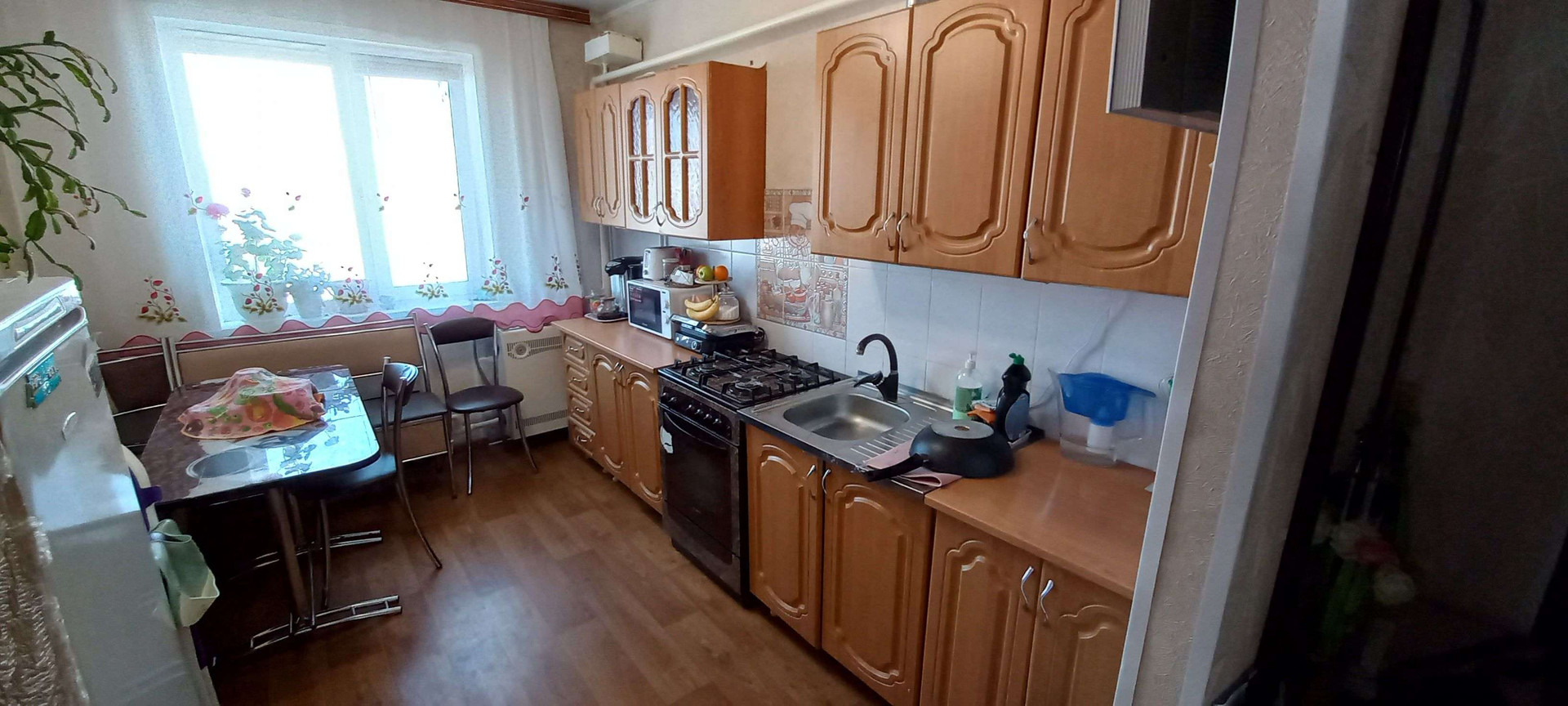 В квартире 4 комнаты, большая кухня пол залитый ровный,в спальных  комнатах новый деревяный пол. Сан узел раздельный, кафель до потолка....стоит большой Водонагреватель !!!