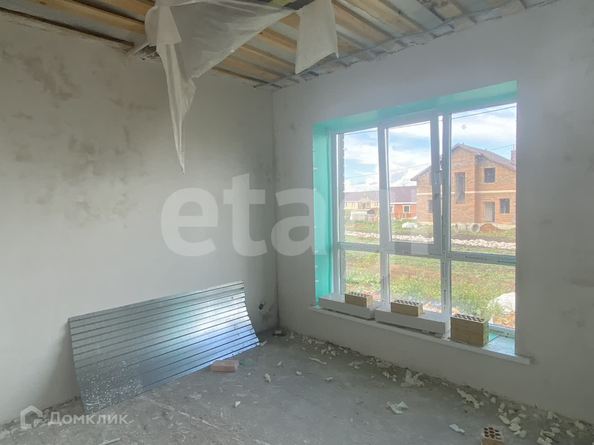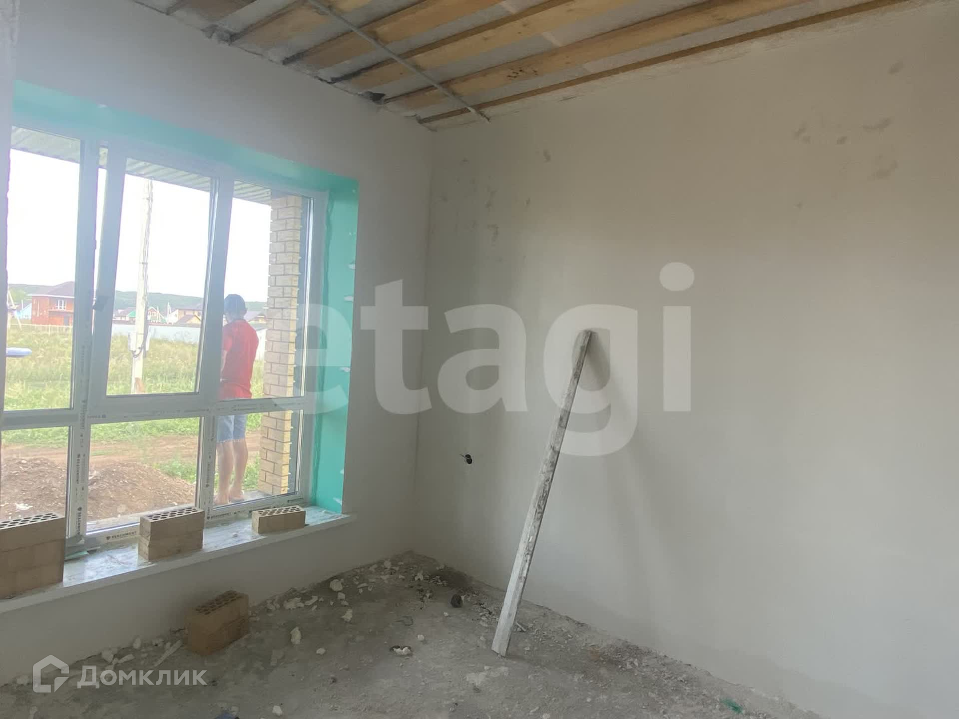 На первом этаже дома расположена кухня-гостиная, санузел и бойлерная, три комнаты. Второй этаж под ремонт. Чистовая отделка выполнена: стены выровнены, натяжные потолки, на первом этаже теплый пол по всему периметру, поставлены двери, на полу ламинат.
