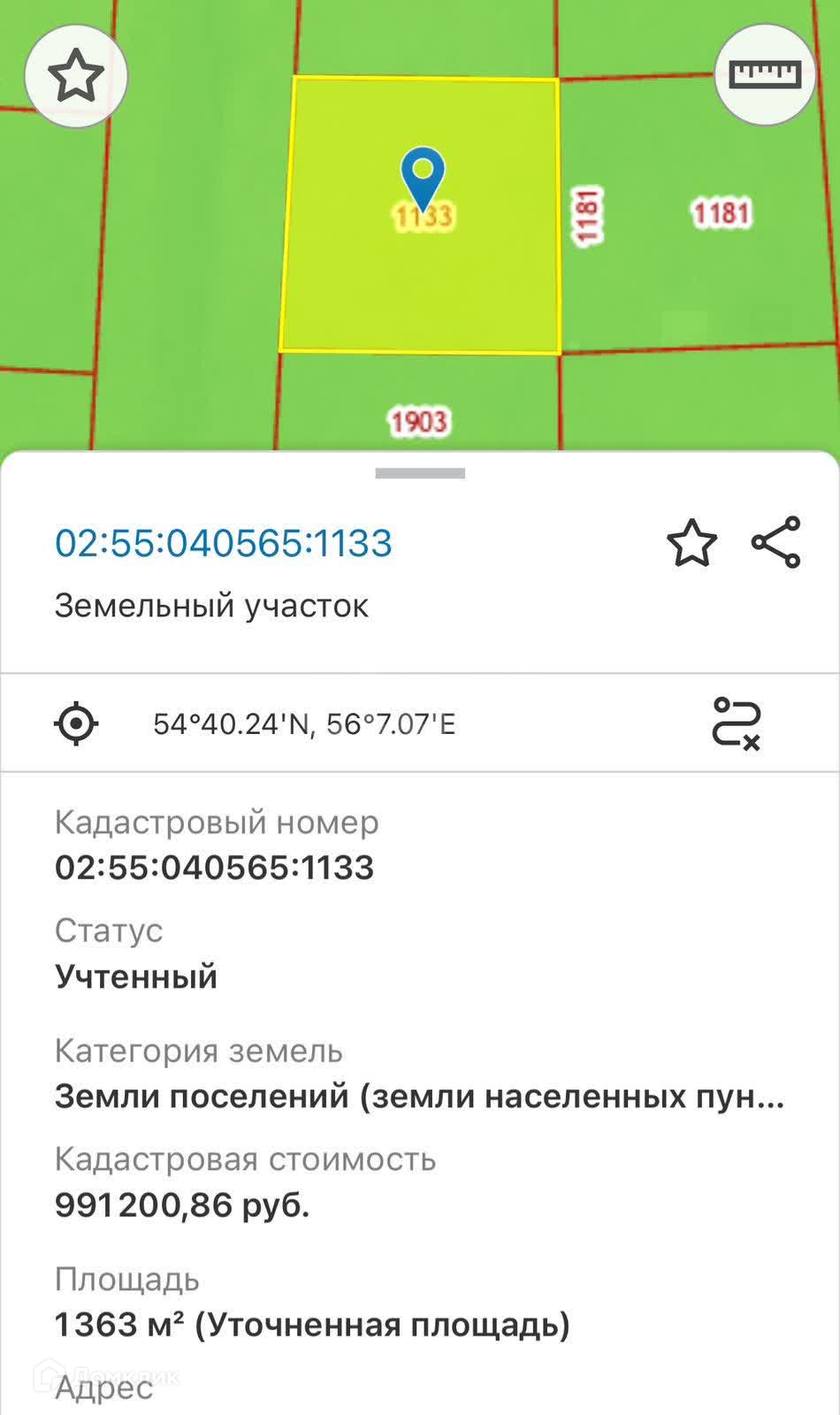 кадастровый номер 02:55:040565:1133