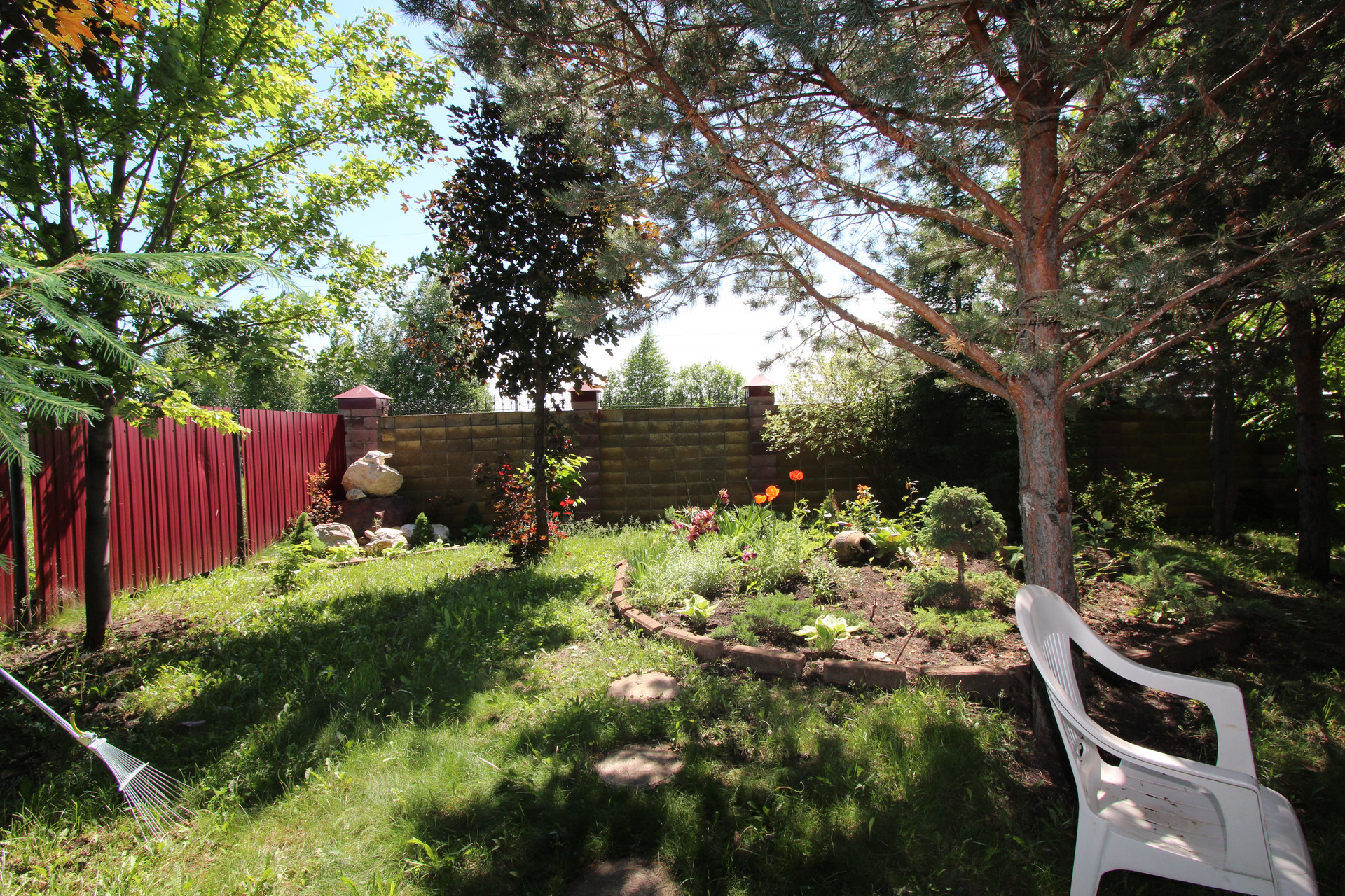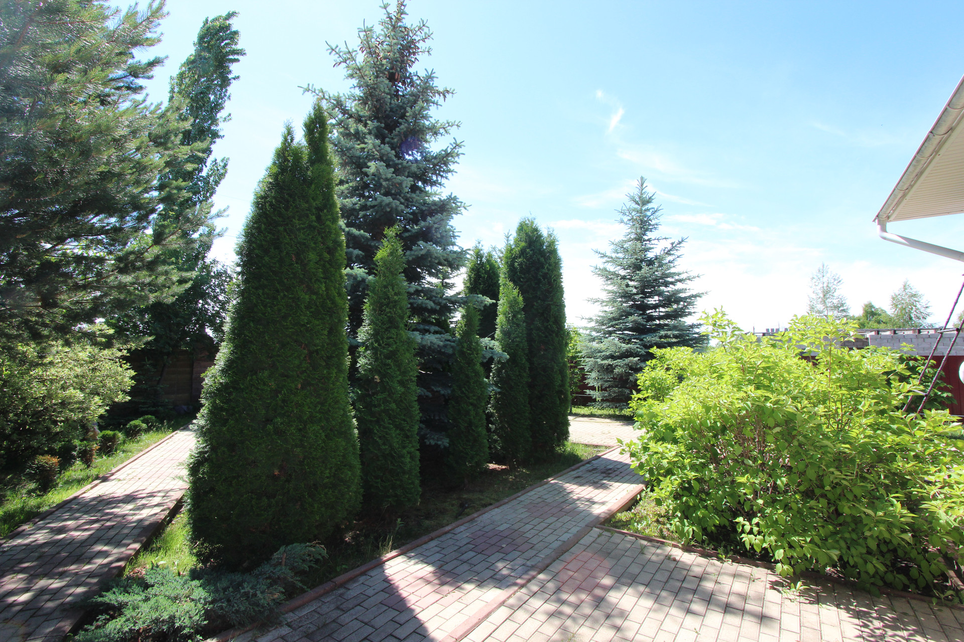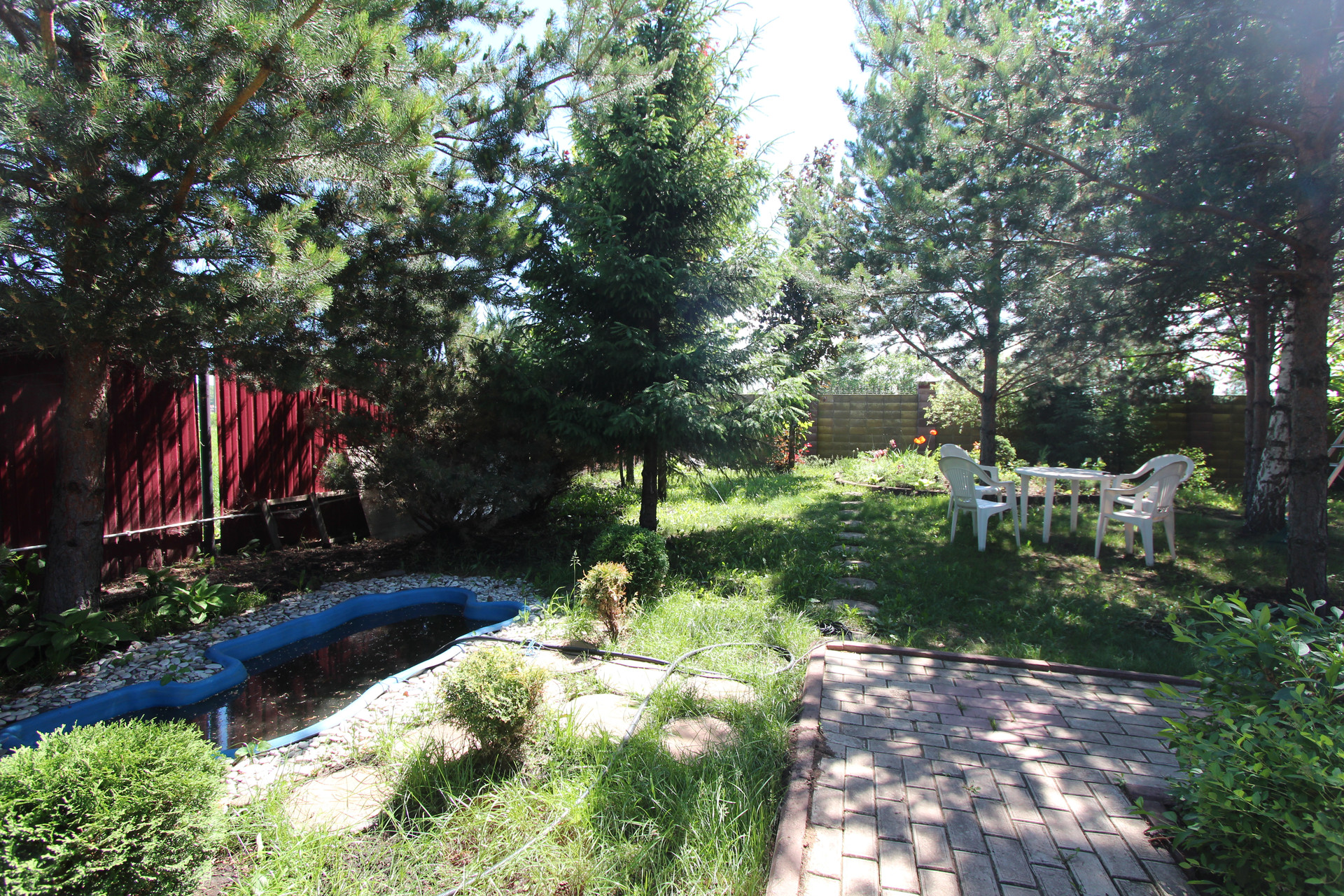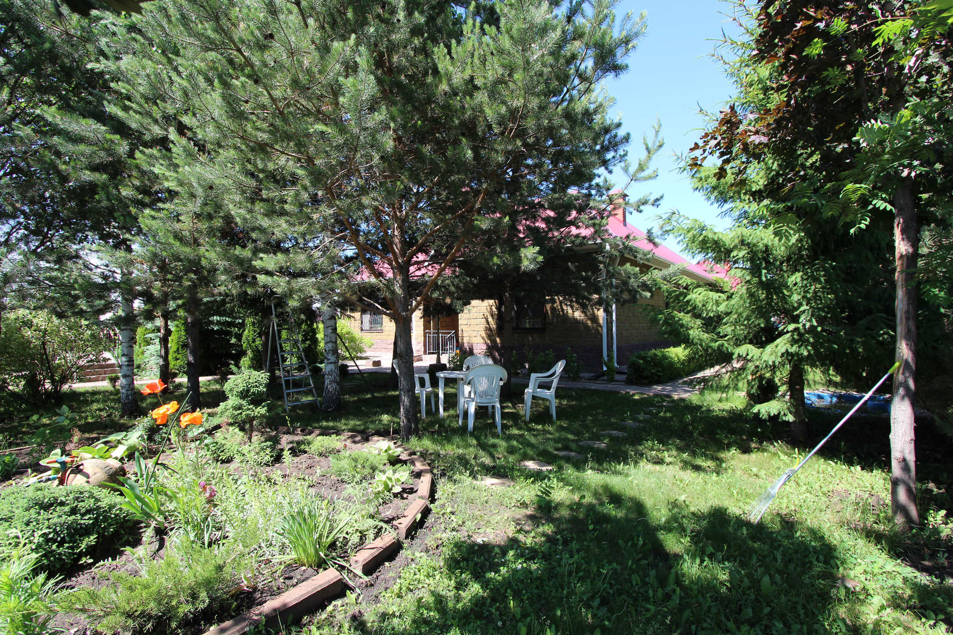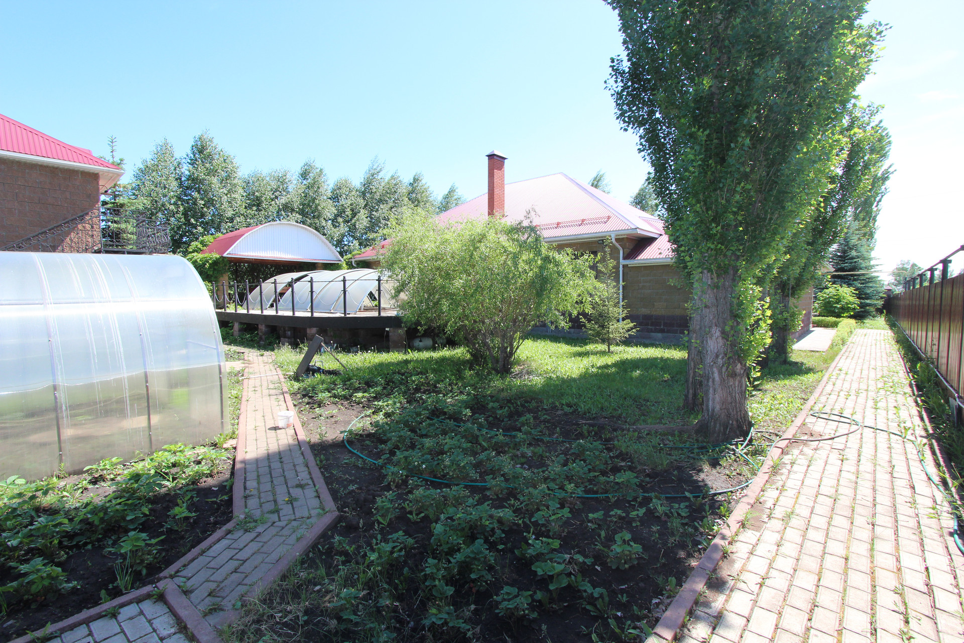 Участок ровный и ухоженный площадью 15 соток. Есть теплица. На участке посажены: туя крупная, каштаны, голубые ели, гортензии, маньчжурские орехи и многие другие растения и деревья.