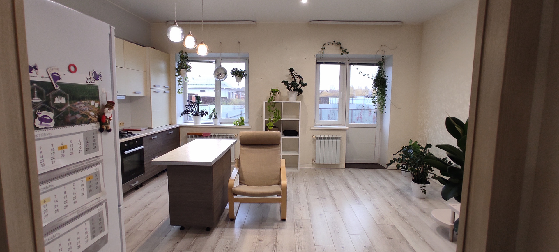 Остается мебель по договоренности: кухня с островком, две кровати с матрасом, стеллаж, шкаф -купе, большой шифоньер, комод в спальне, варочная поверхность, вытяжка, духовка,