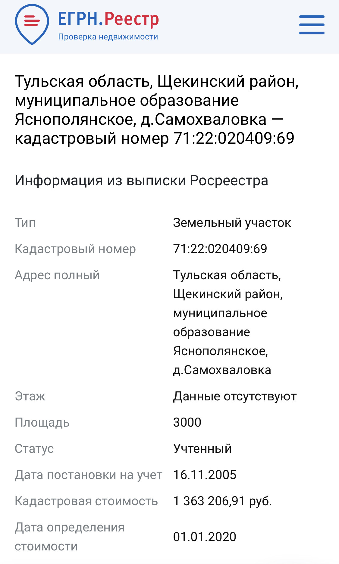 Назначение ЛПХ, подходит для строительства дома, дачи. Кадастровый номер 71:22:020409:69.