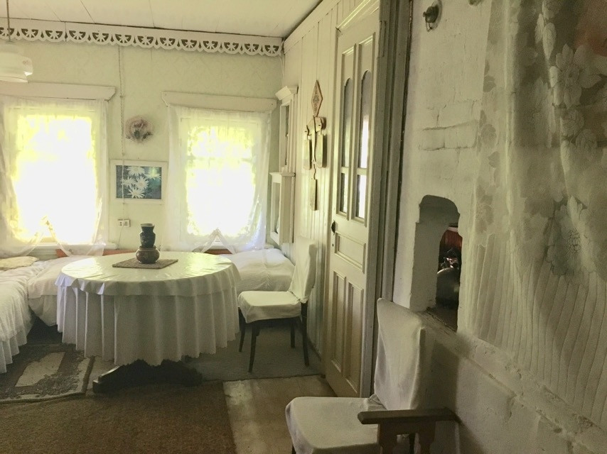 Уникальная усадьба с садом и деревянным домом , комнаты в котором выполнены в литературном стиле.  Дом используется как дача. В доме заменена крыша, на участке скважина и небольшая банька. Отопление печное . Печь добротная, без трещин , работает исправно.