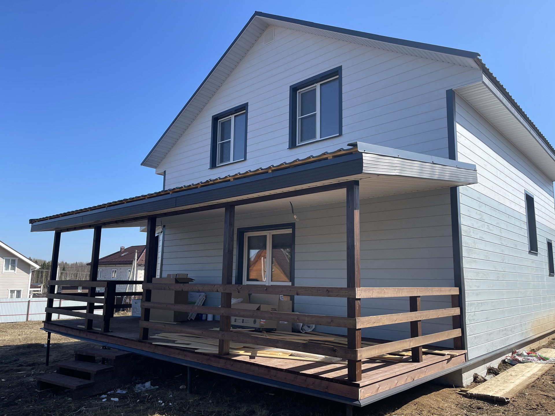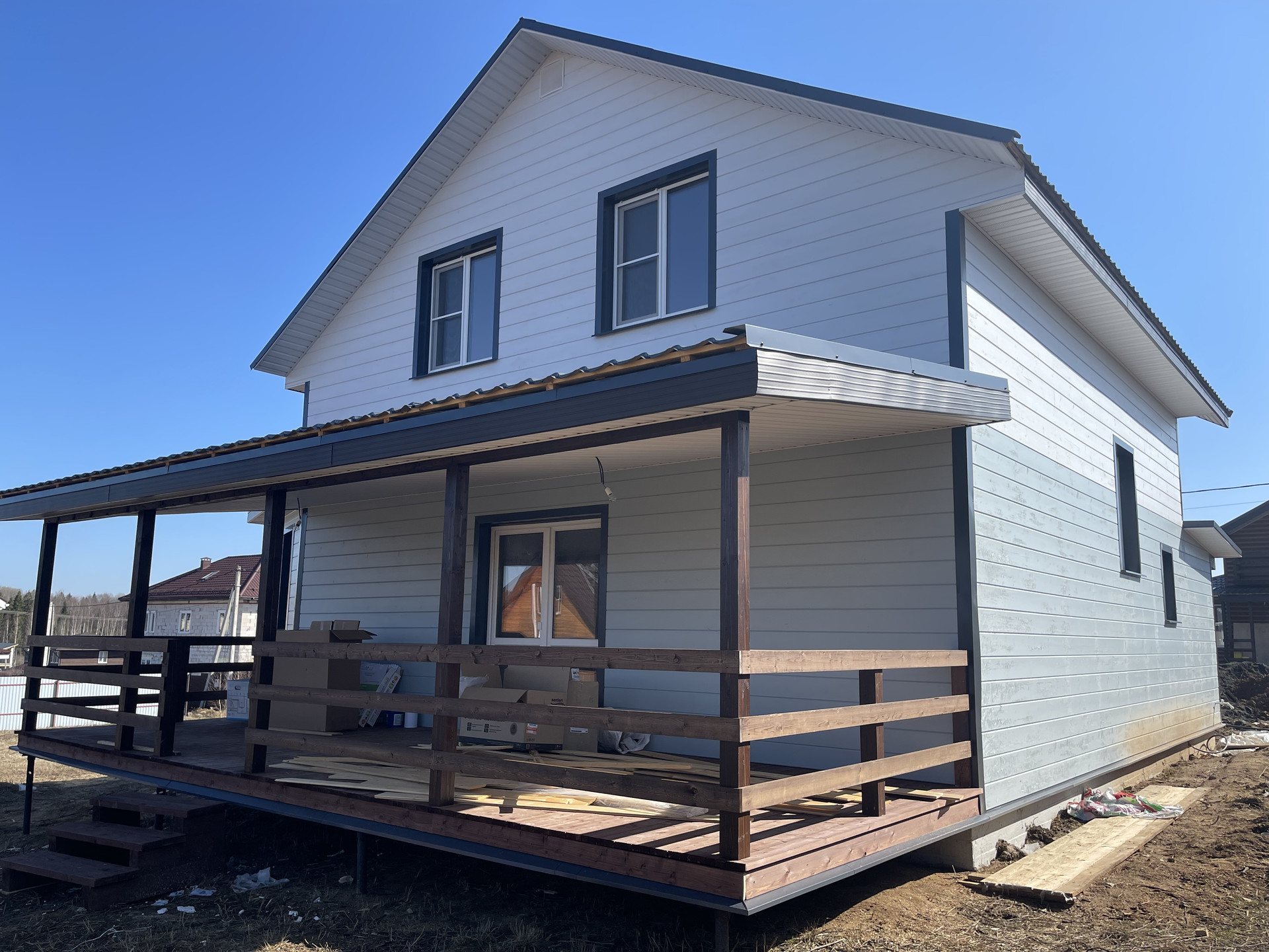 Продам жилой новый дом 165 кв. м. на участке 8 сот. в Дмитровском районе в д. Саморядово 25 км. от МКАД. Работаем по ипотеке. Готовый новый большой дом со всеми коммуникациями.