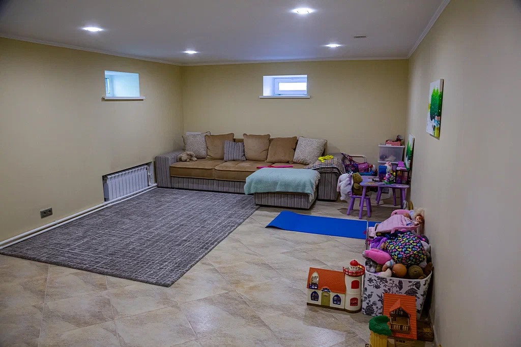 На цокольном этаже расположены : прачечная, большая гардеробная для хранения вещей, котельная, детская игровая комната.