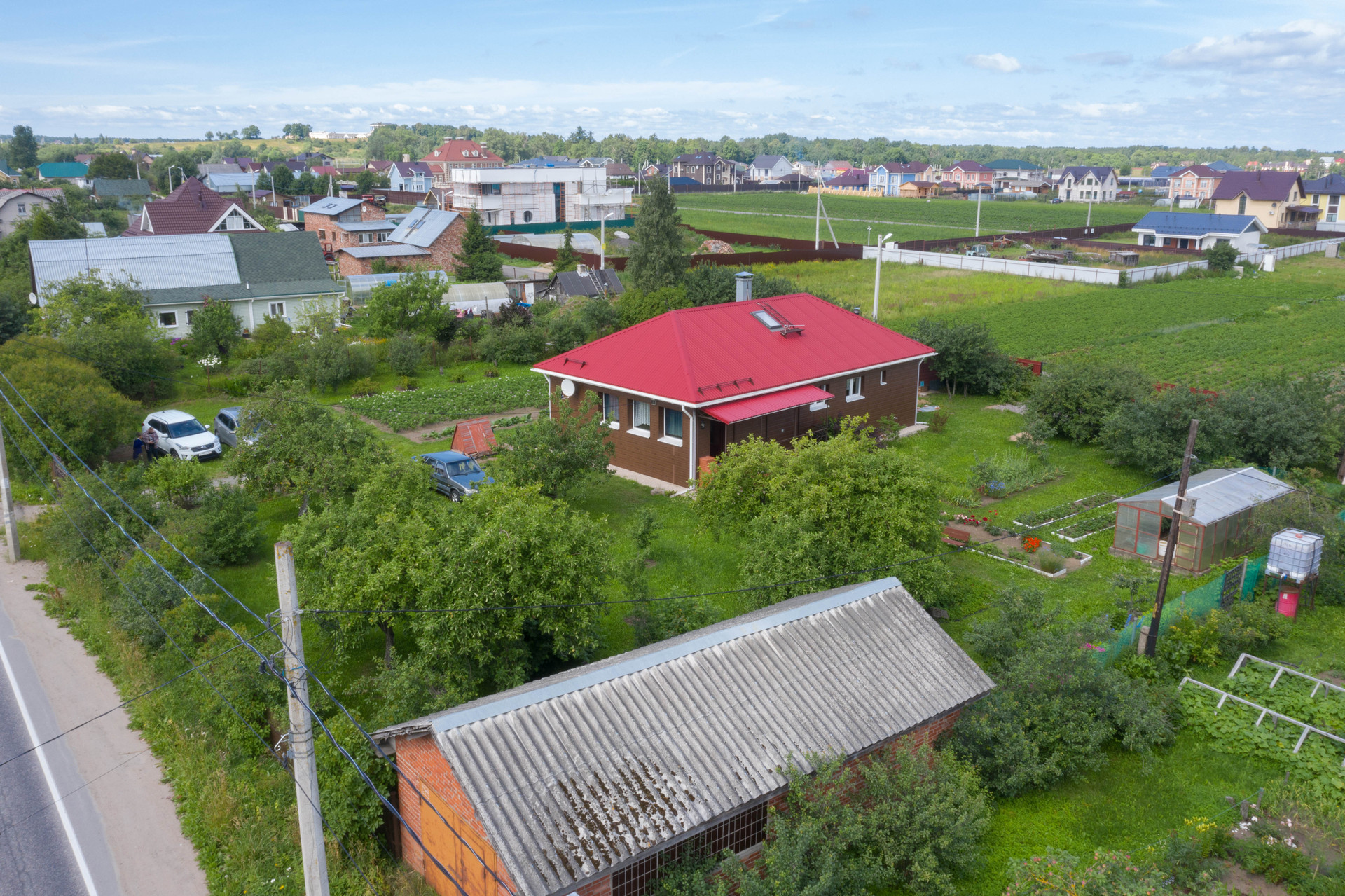 Ровный разработанный участок с плодовыми деревьями и хоз.постройками с кирпичным домом с мансардным этажом, на ленточном фундаменте, с двойной теплоизоляцией. ГАЗ подведен на участок, в 5 метрах от дома. Электричество 15КВт, колодец, скважина, септик. В доме сауна, душ, печь, туалет, интернет. Рядом магазин, Бибигонский пруд, КАД.