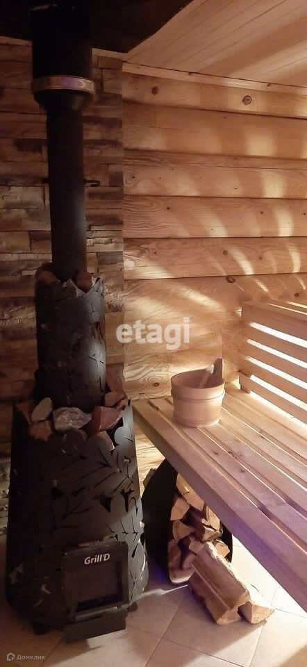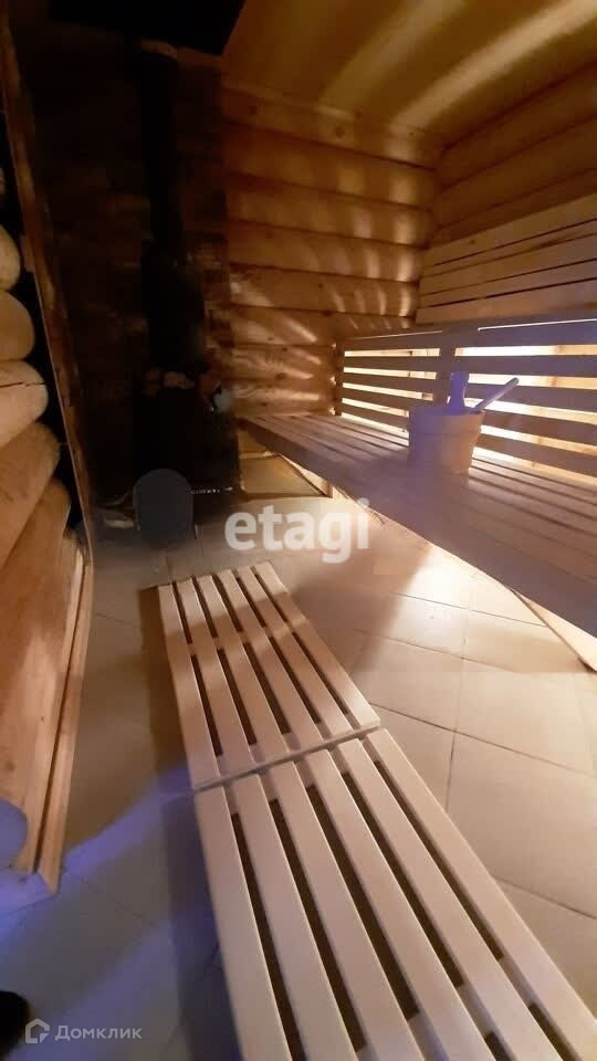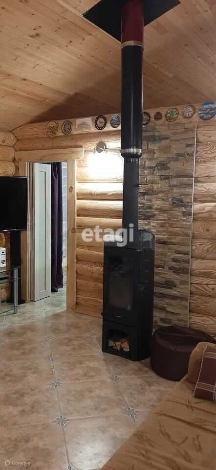 В доме расположены: кухня-гостиная (21,4 м2), спальня (12 м2), душевая (6,1 м2), баня на дровах (6,5 м2), печь-камин, санузел (2,3 м2), техпомещение (3,6 м2), прихожая (5 м2), терраса (12 м2). В задней части дома пристроен большой навес (15 м2). Дом полностью меблирован и оборудован техникой.