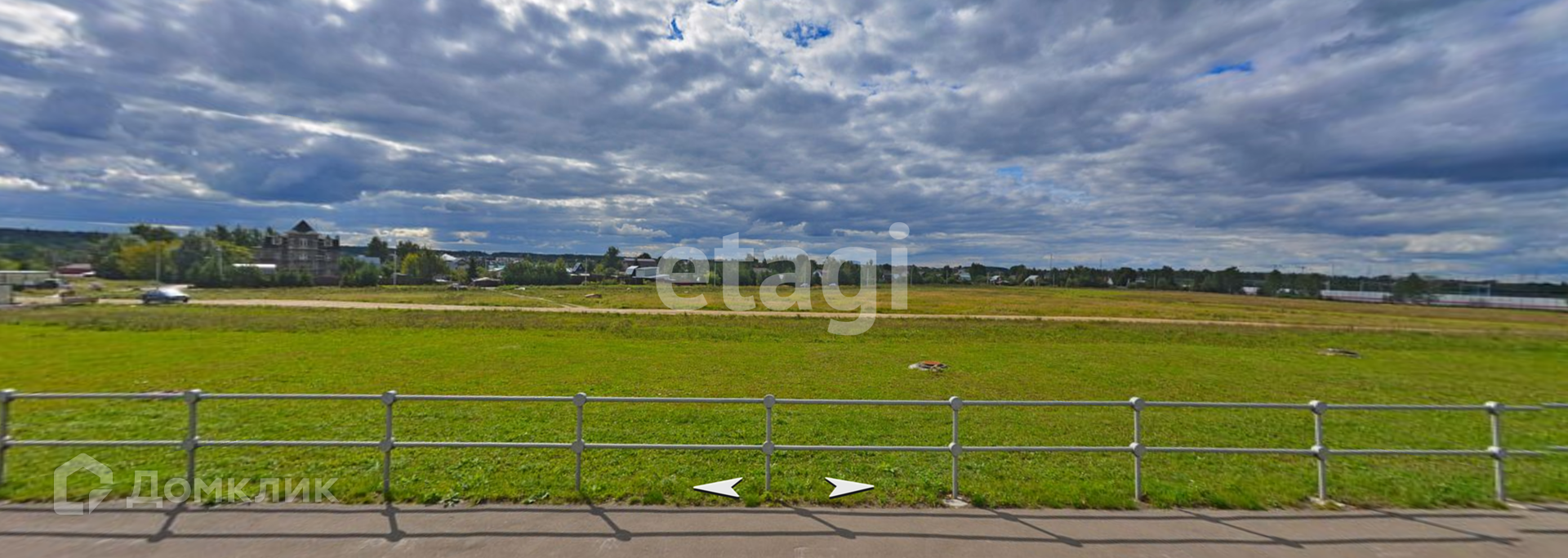 На участке стоит старый дом (под снос), растут яблони, ели, берёзы. Асфальтированная дорога до участка, въезд в деревню через шлагбаум.