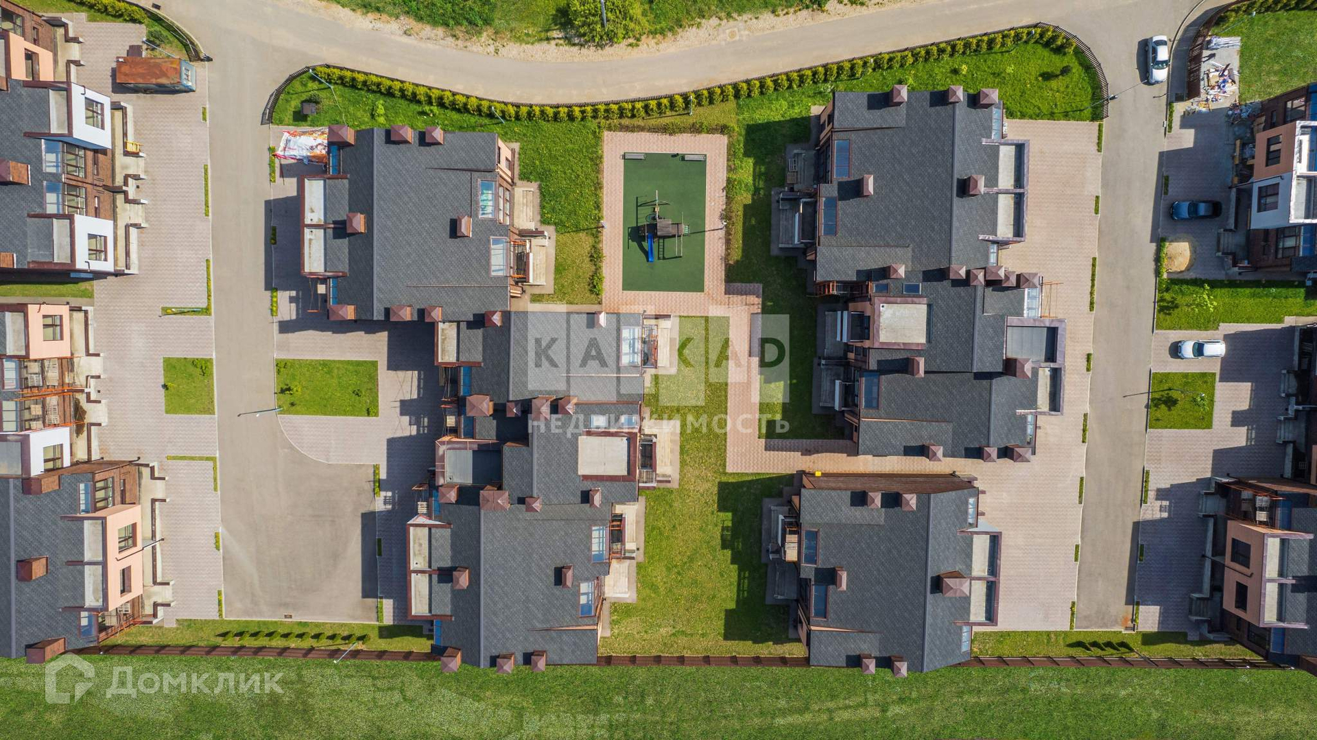 ЖК Видное Клаб имеет внешнее ограждение, въезд в комплекс через шлагбаум. Выполнено благоустройство - озеленение, пешеходные дорожки, тротуары. На территории обустроена детская площадка.