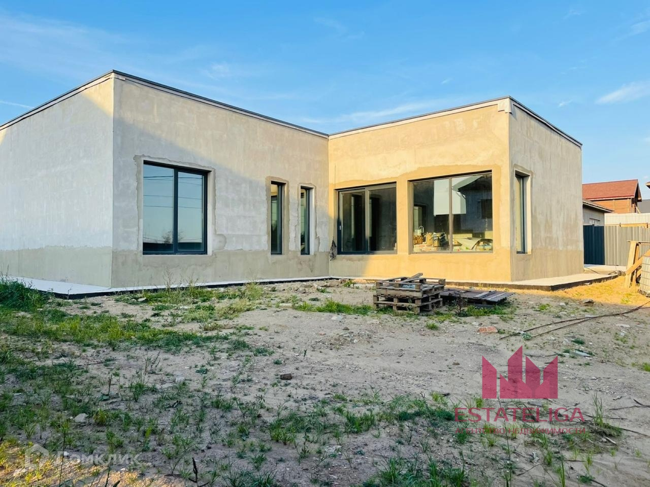Id 46180. Современный Дом Г-образной формы 160 кв.м с плоской кровлей и большим панорамным остеклением, расположен в Городе Видное.