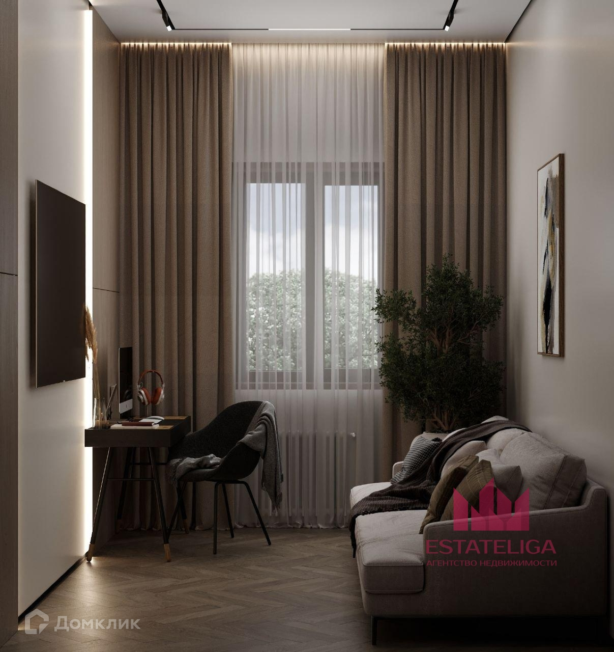 полностью продуманный интерьер, где визуализации до мелочей соответствуют проектной документации, вплоть до розеток и выключателей.