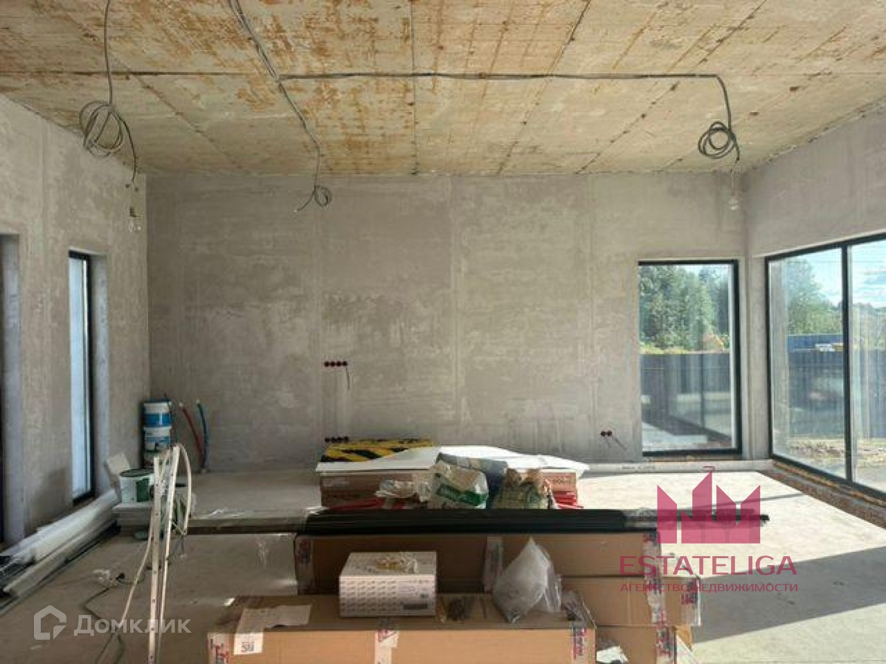 HS система Germany ) с выходом на террасу. Въездная группа, залит бетон 300мм марка М350 с армированием под гараж.