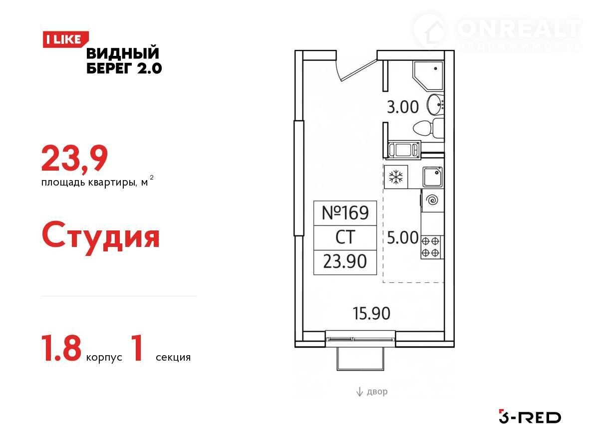 Общая площадь 23.9 м2