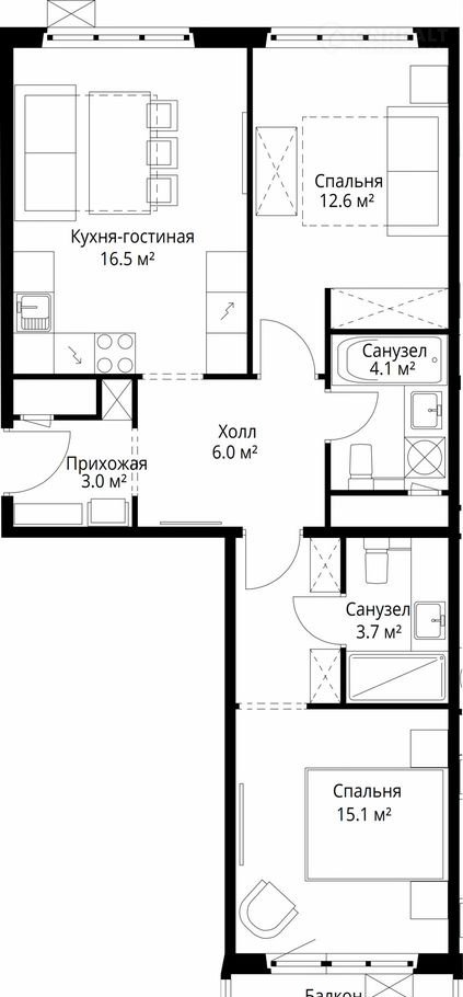 Общая площадь 62 м2