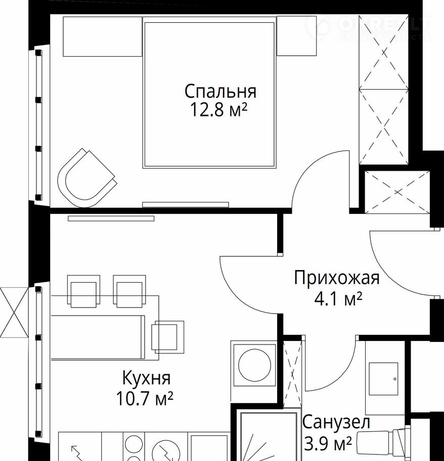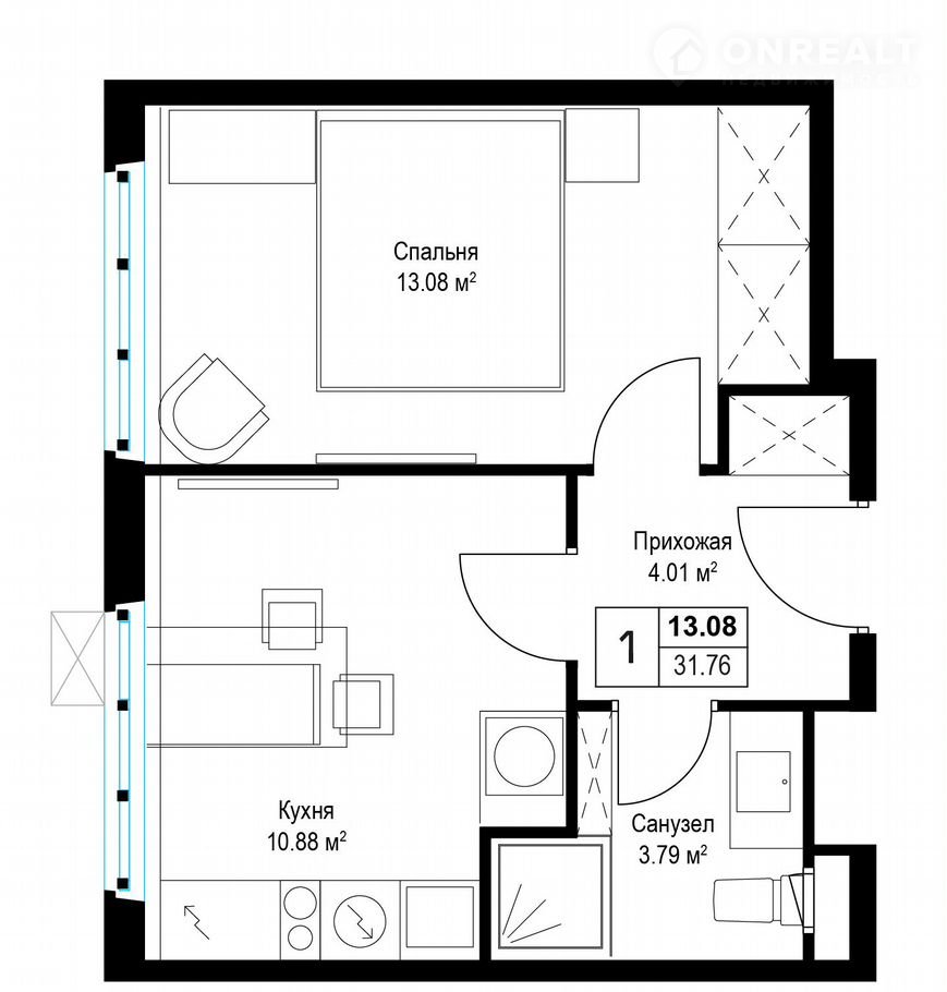 Общая площадь 31.5 м2