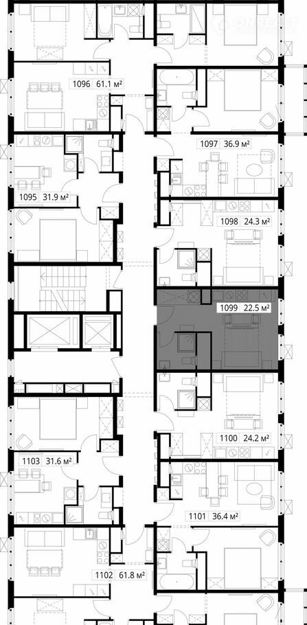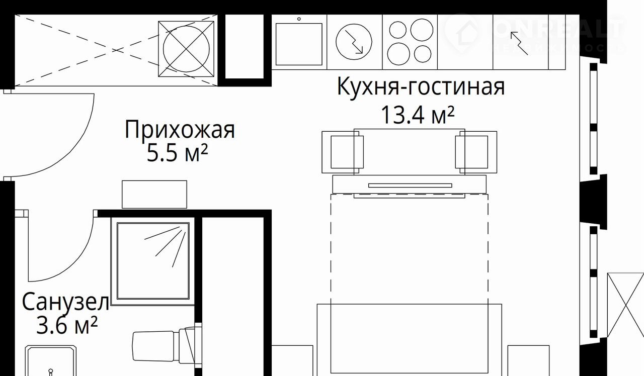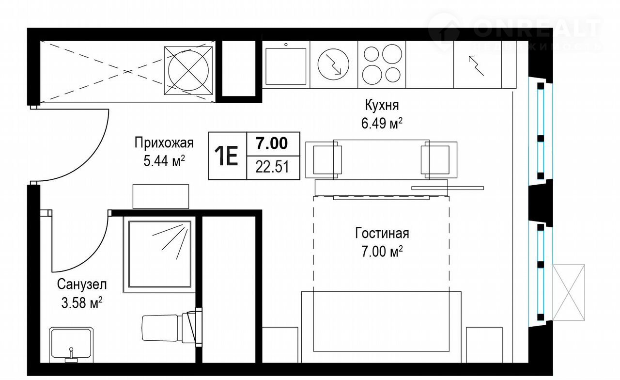 Общая площадь 22.5 м2