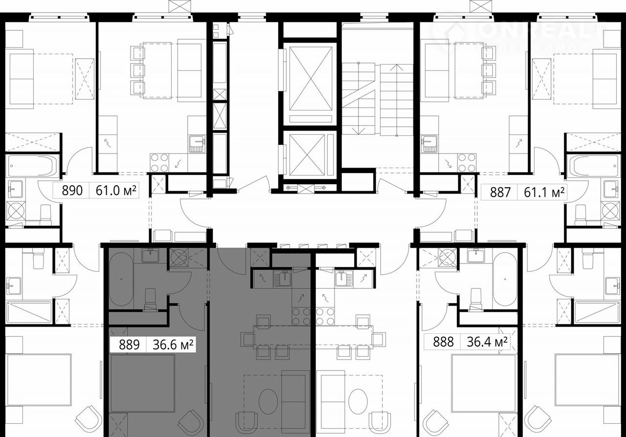 1-комнатная квартира, 36.6 м2, этаж 8 / 17, на продажу в деревне Сапроново, микрорайон Купелинка, 7