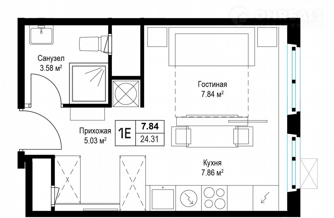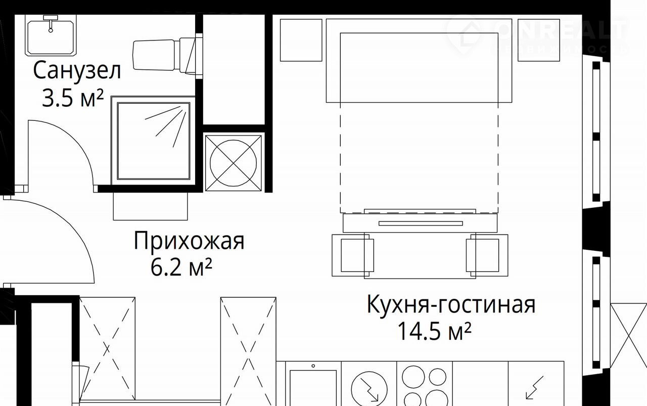 Общая площадь 24.2 м2