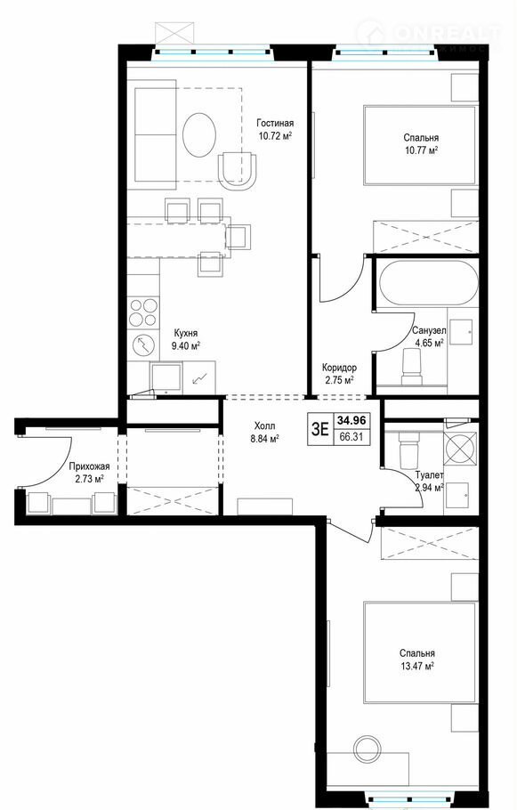 Общая площадь 66.3 м2