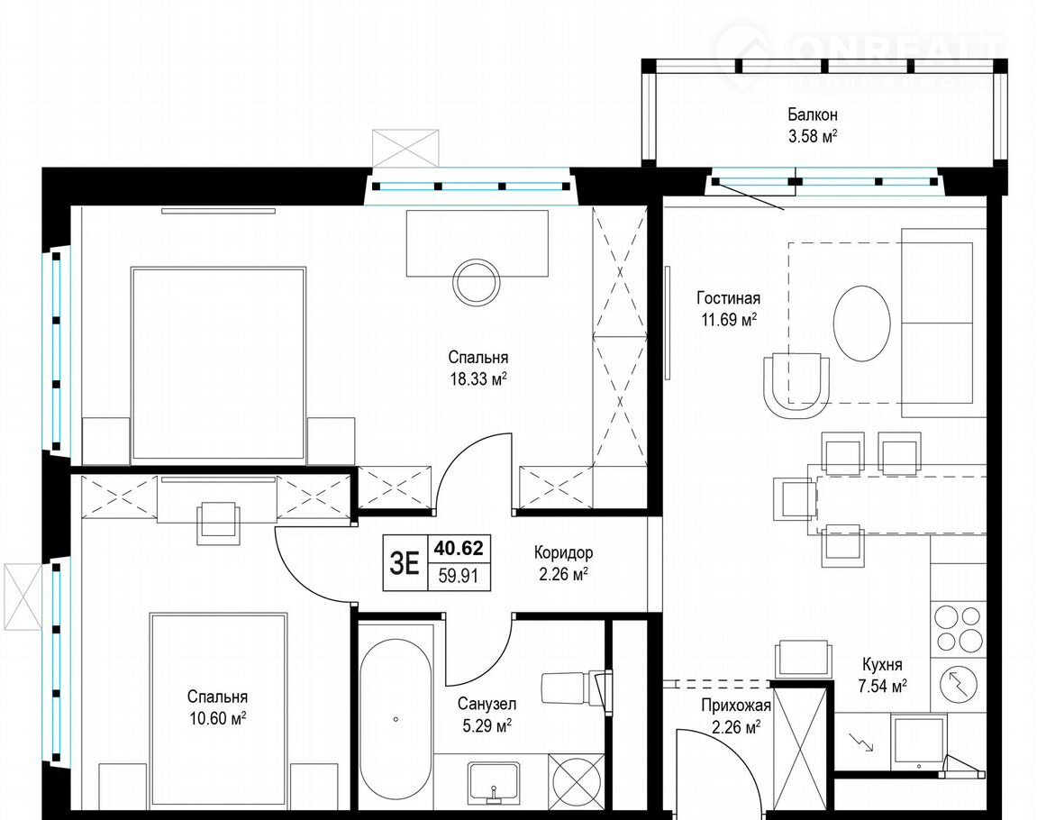 Общая площадь 60 м2