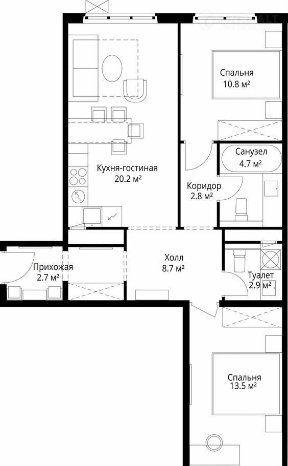 Количество комнат 2