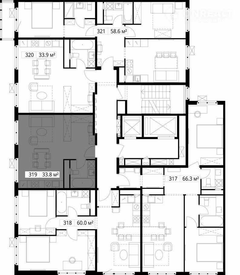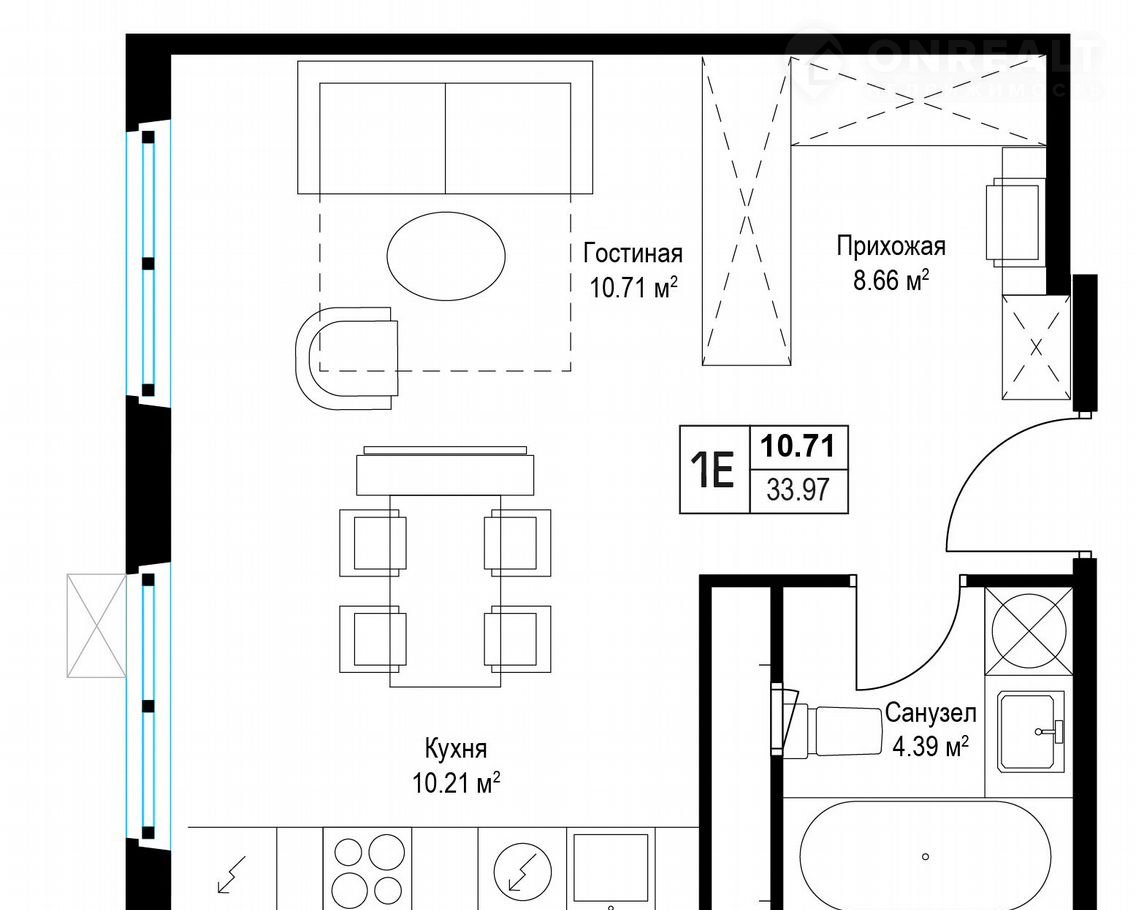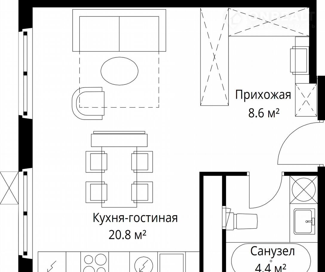 Общая площадь 33.8 м2