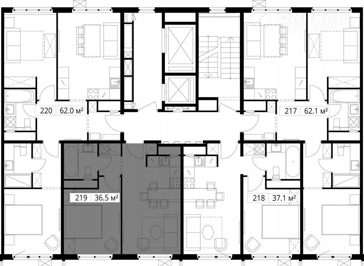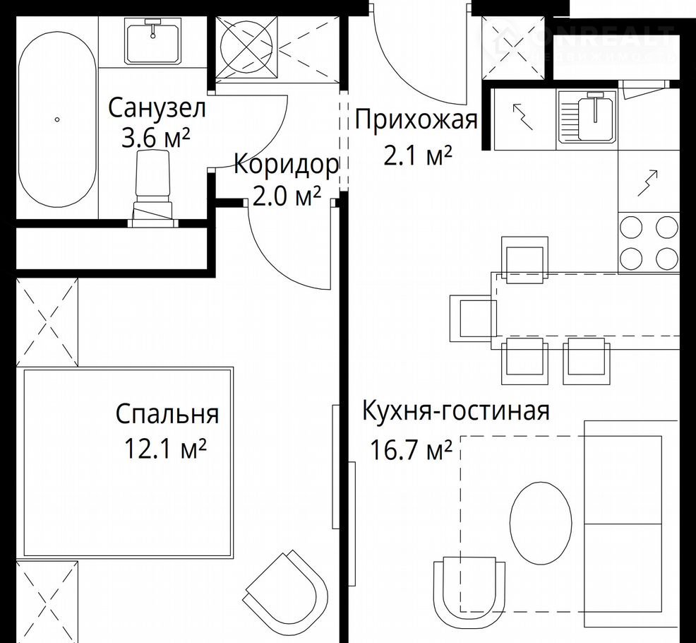 Общая площадь 36.5 м2