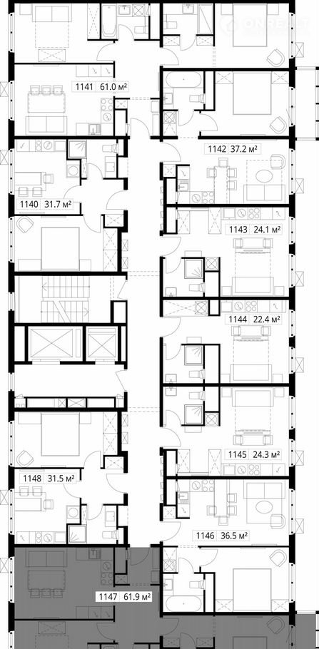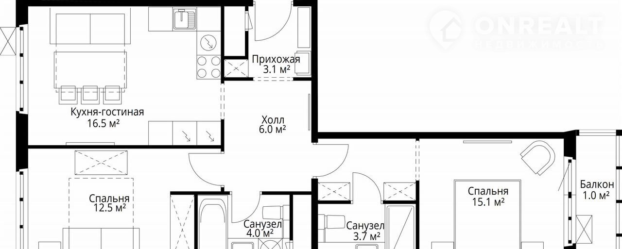 Общая площадь 61.9 м2