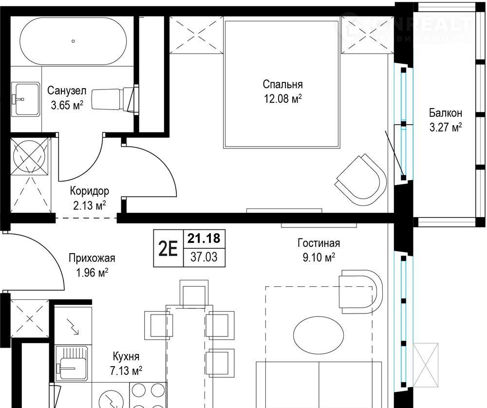 Общая площадь 36.9 м2