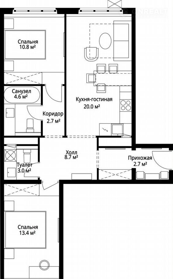 Количество комнат 2