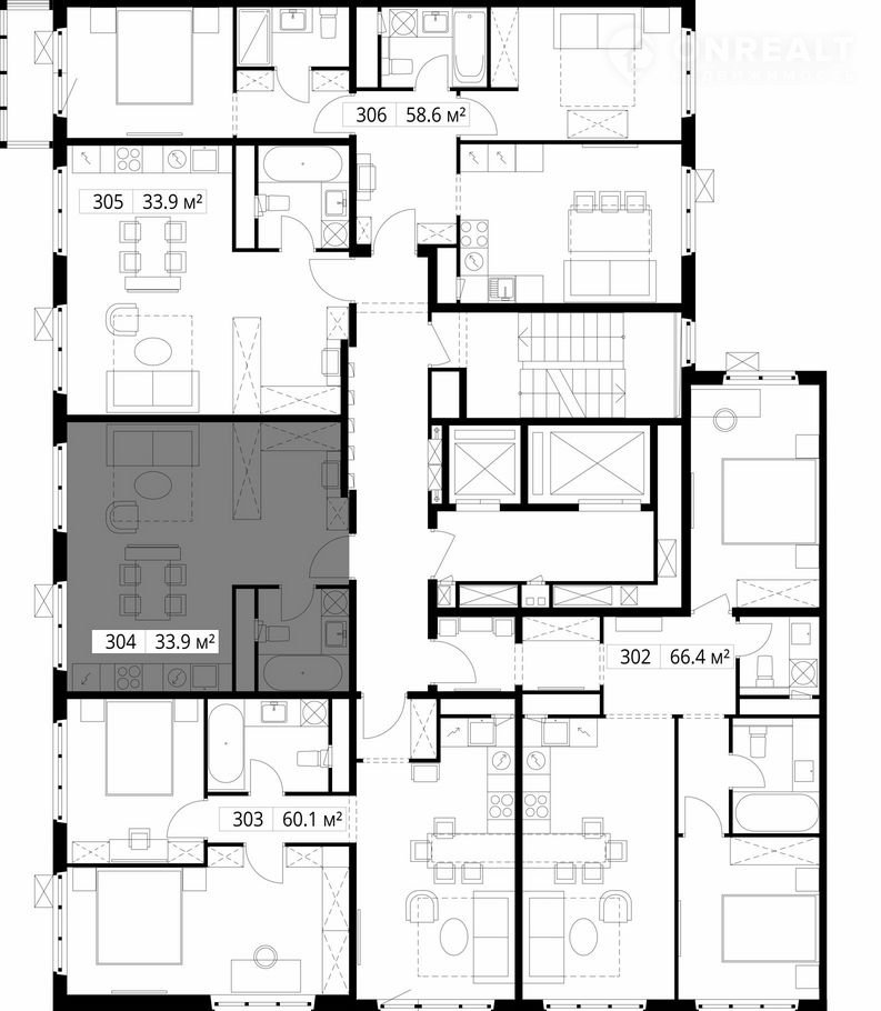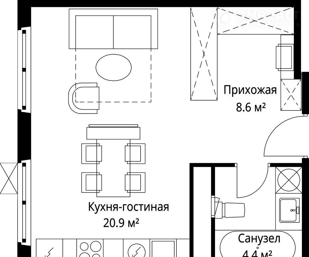 Общая площадь 33.9 м2