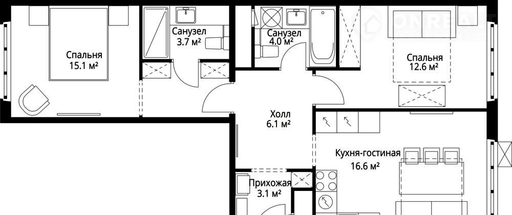 Общая площадь 61.2 м2