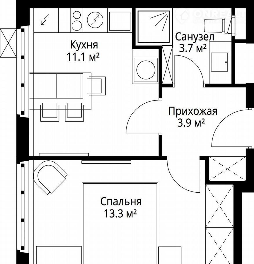 Общая площадь 32 м2
