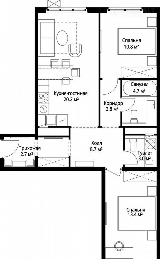 Количество комнат 2