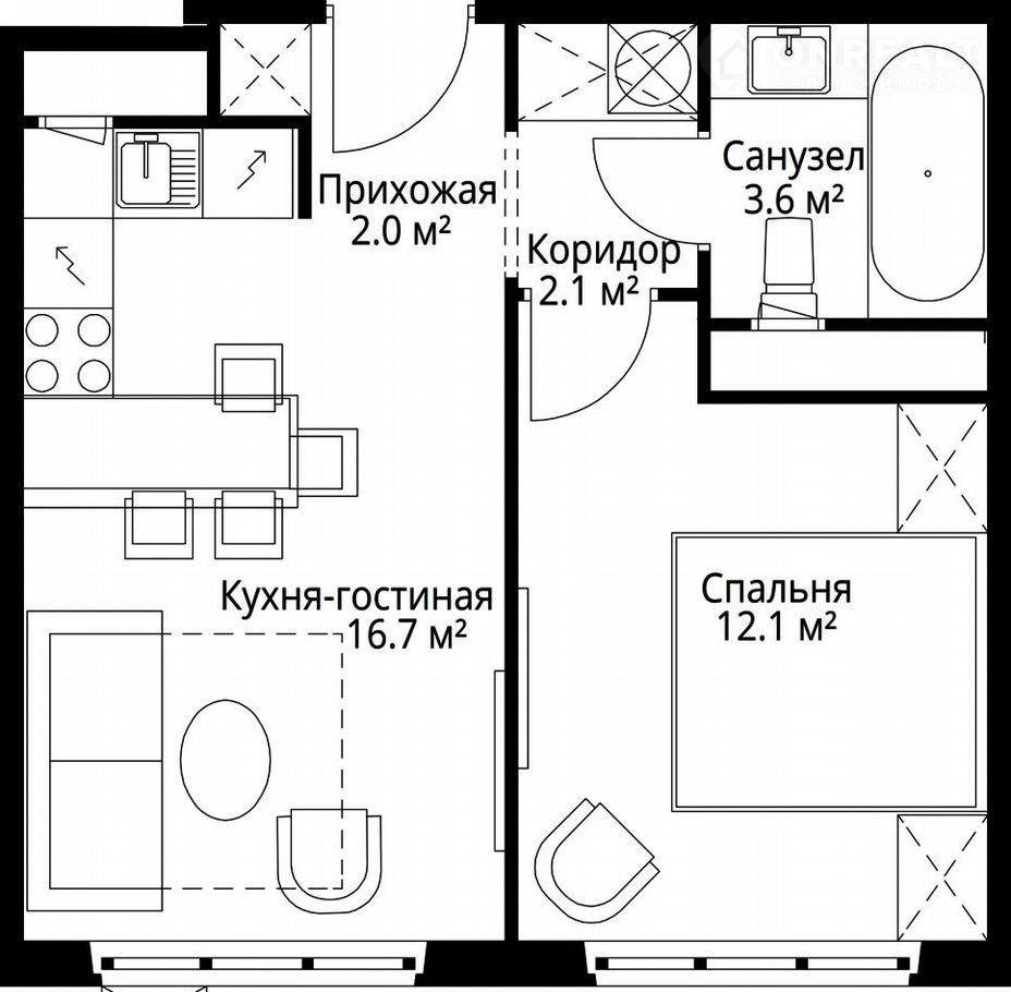 Общая площадь 36.5 м2