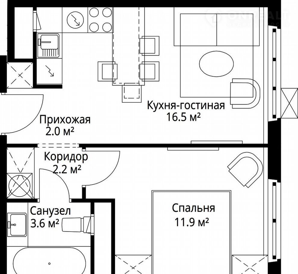 Общая площадь 36.2 м2