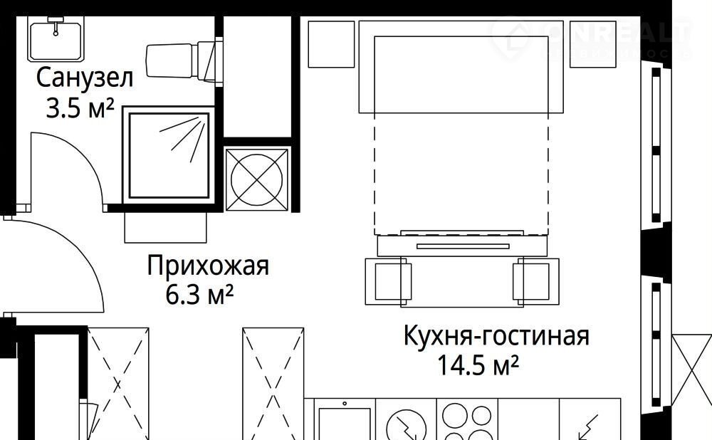Общая площадь 24.3 м2