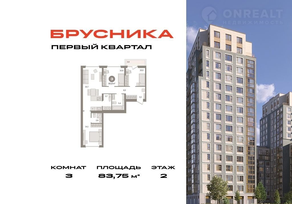 Общая площадь 83.8 м2
