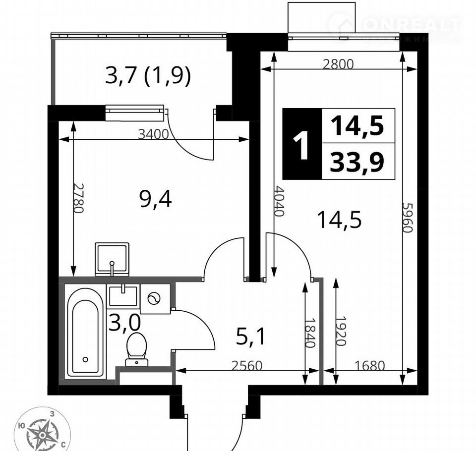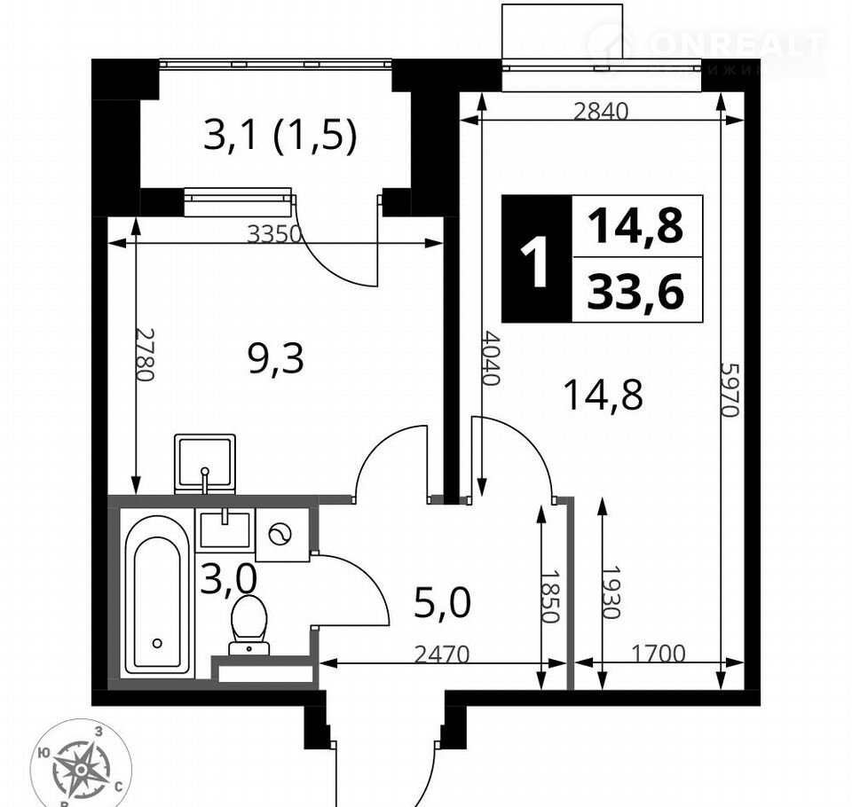 Количество комнат 1