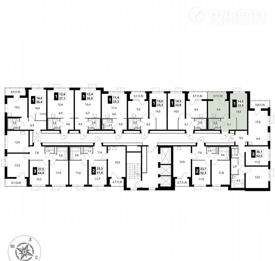 1-комнатная квартира, 34.5 м2, этаж 11 / 24, на продажу в деревне Сапроново, ЖК 1-й Донской, 3