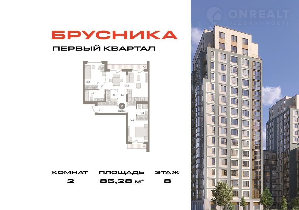 Общая площадь 85.3 м2