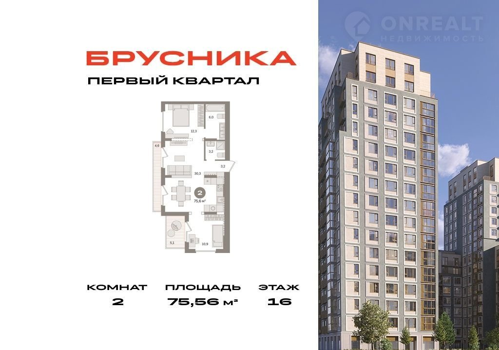 Общая площадь 75.6 м2