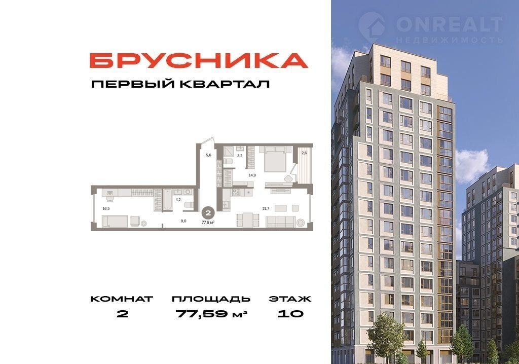 Общая площадь 77.6 м2