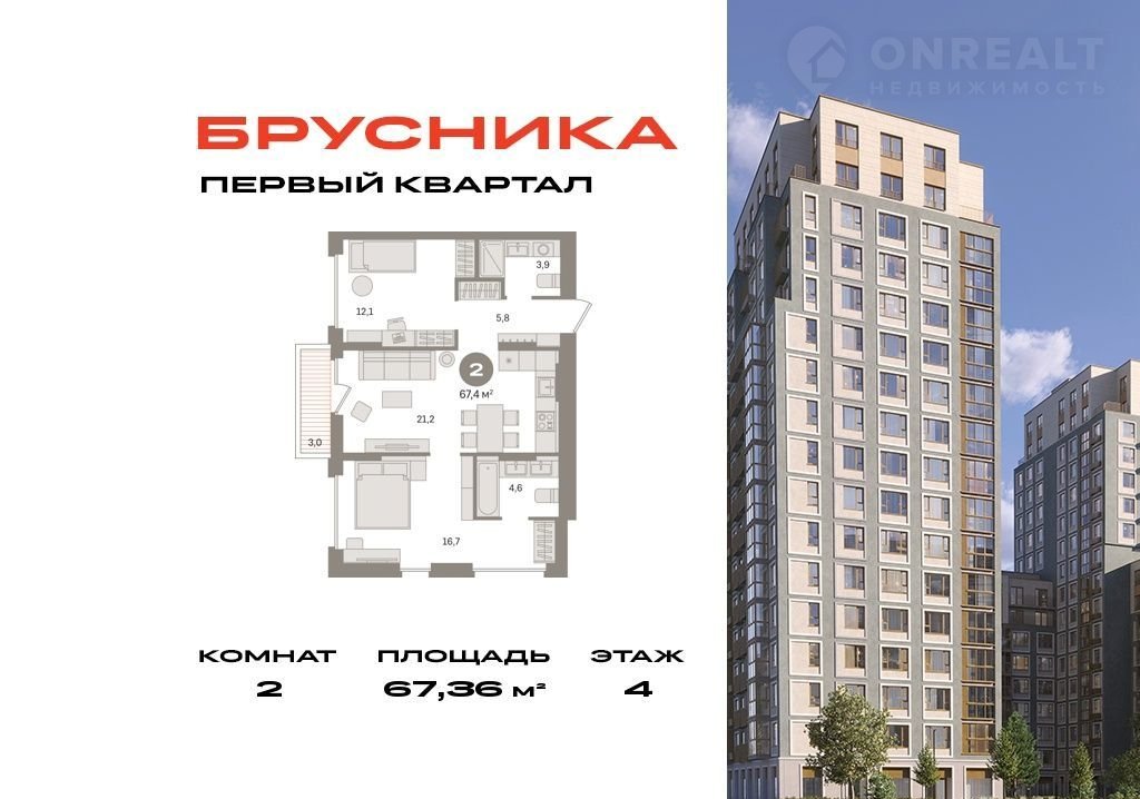Общая площадь 67.4 м2