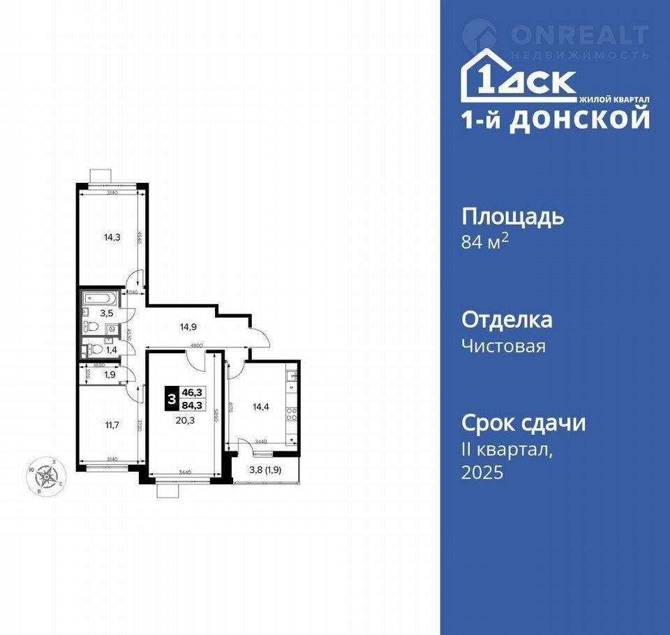Общая площадь 84.3 м2
