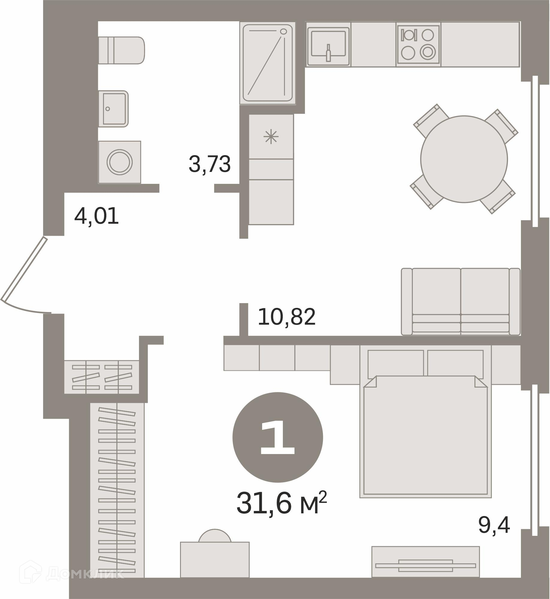 Общая площадь 31.64 м2