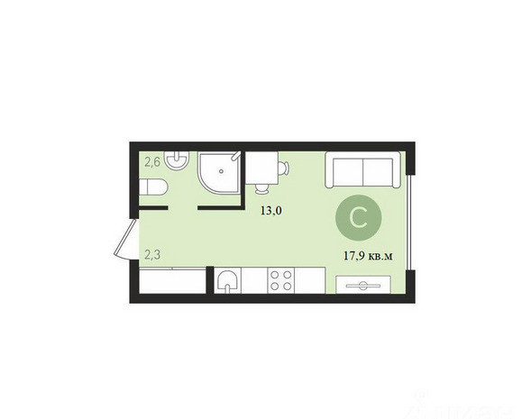 Общая площадь 18 м2