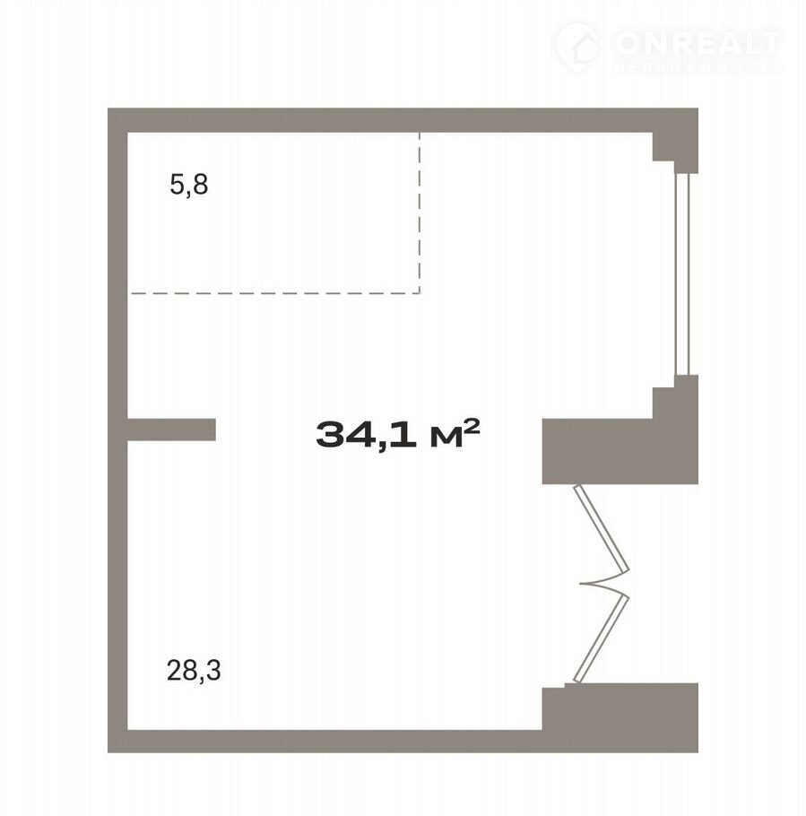 Общая площадь 34.1 м2