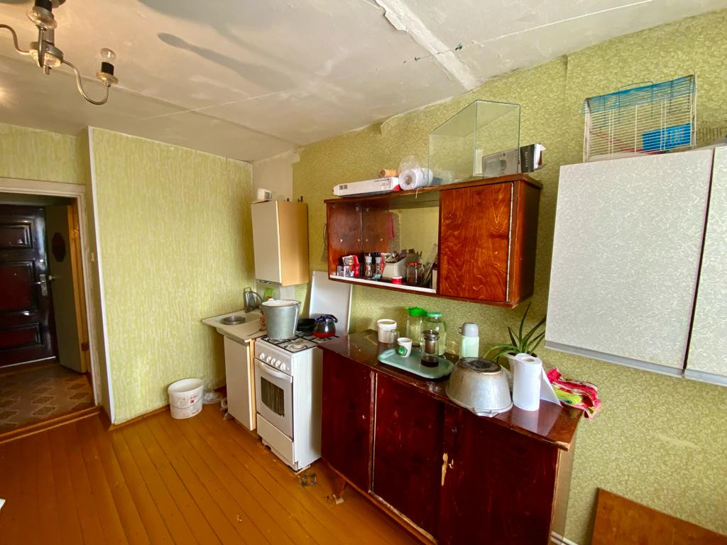 Квартира нуждается в ремонте, санузел совмещенный, полы деревянные.